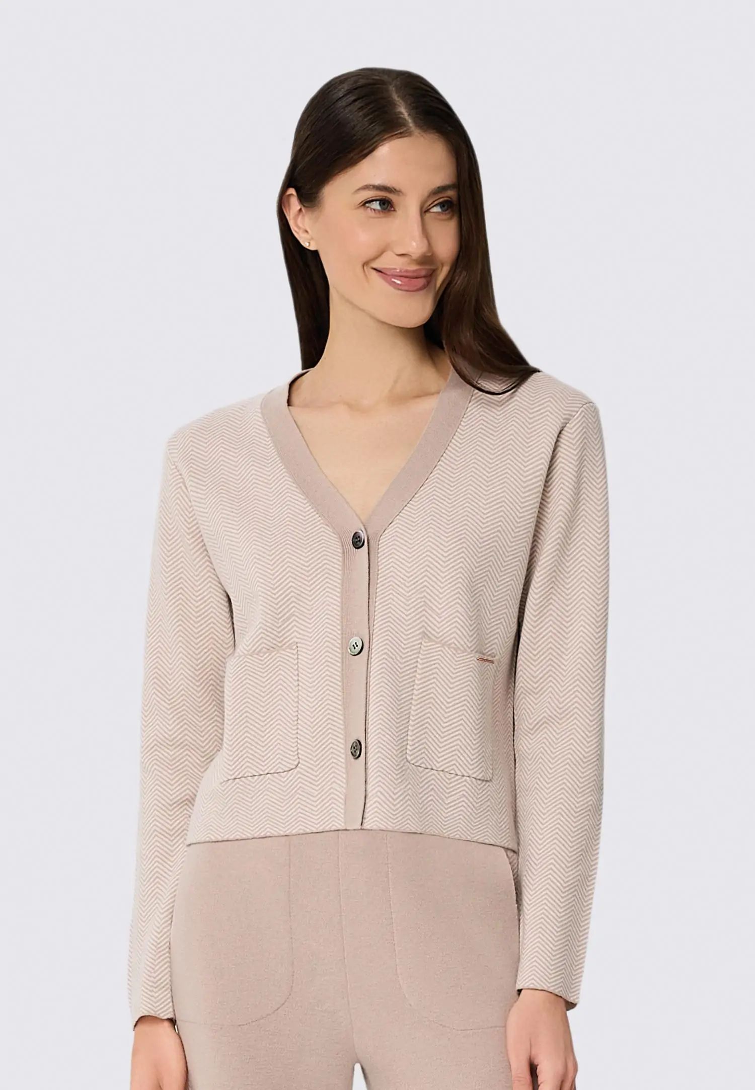 Стилен къс кашмирен кардиган. Класическият модел придава характер, полуприлепналата кройка подчертава силуета, а естественият материал осигурява комфорт. Закопчаването отпред с копчета и джобовете добавят практичност. Подходящ както за ежедневно носене, така и за по-официални поводи. ETERNAL WAVES — колекция, посветена на вечната елегантност. Продуктът е гордо проектиран в Естония!