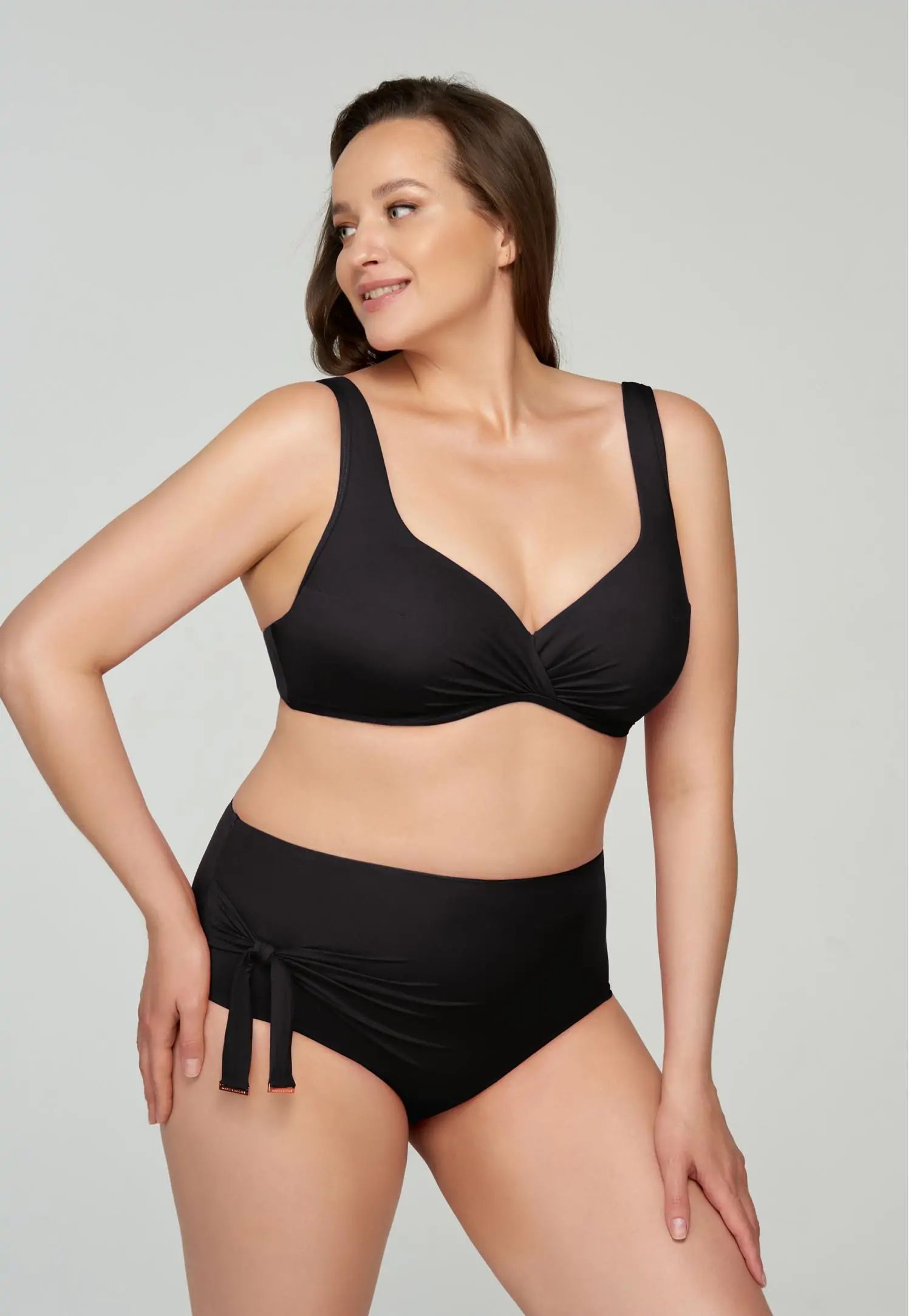 Монокини с висока талия, по-широк отвор за крачолите, асиметрични плисета отпред и декоративна подвижна връзка. Предната и задната част са с подплата. Продуктът е проектиран и разработен в Естония! Колекцията Basic се предлага в четири различни цвята: черно, фуксия розово, тъмно лилаво и кралско синьо. Материята на колекцията Basic съдържа влакна LYCRA® ADAPTIV, които осигуряват по-добро прилягане за повече типове тяло благодарение на отличните си свойства на разтягане и свиване. Съдържанието на Lycra® също така осигурява на продукта по-голяма издръжливост и по-дълга употреба.