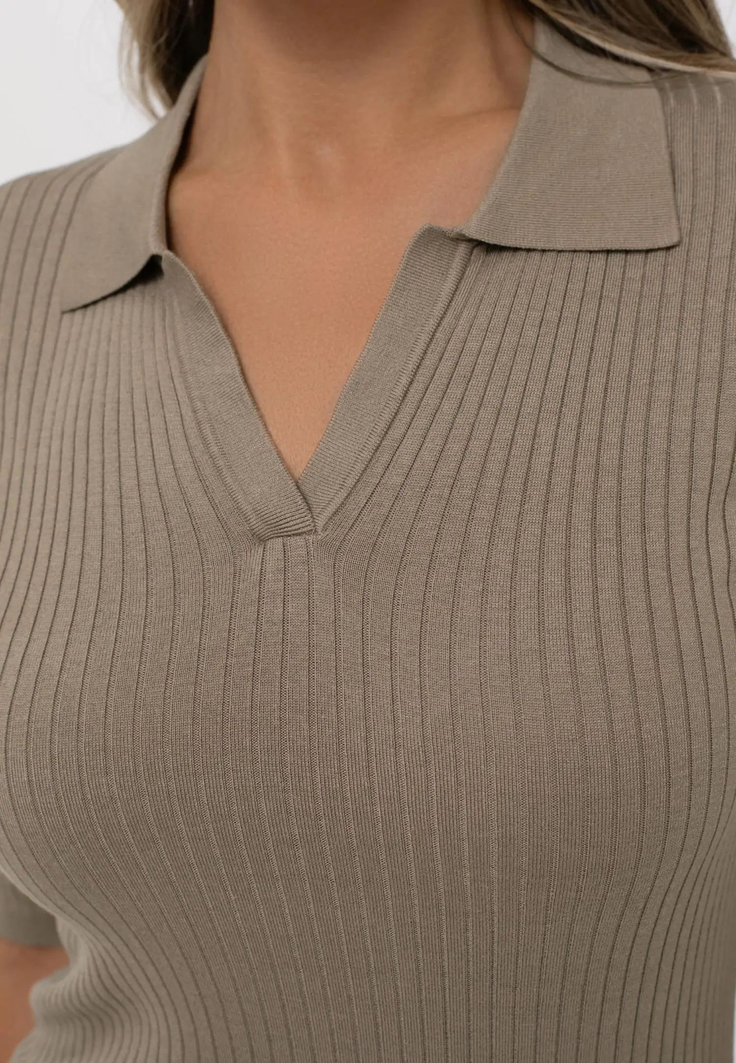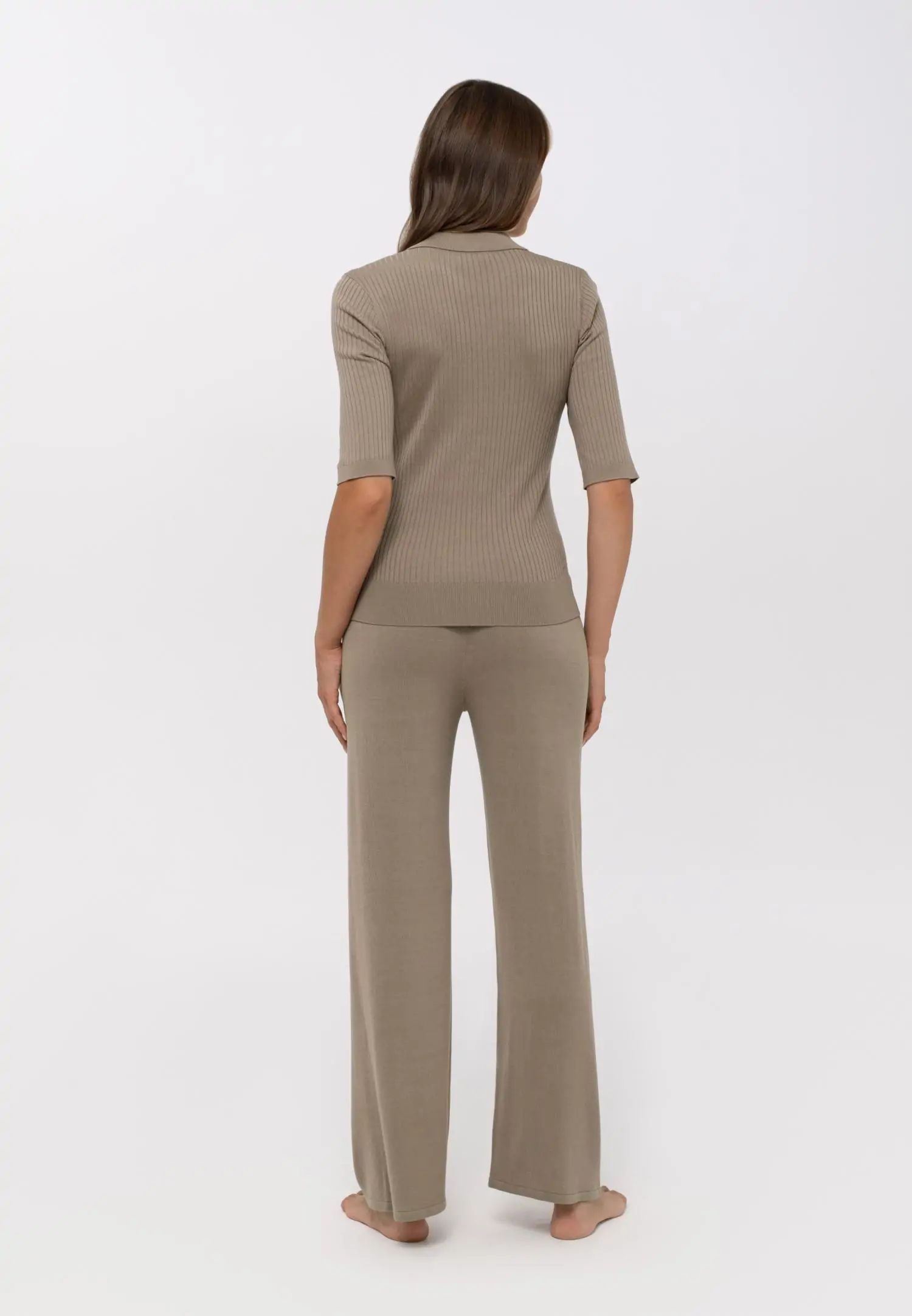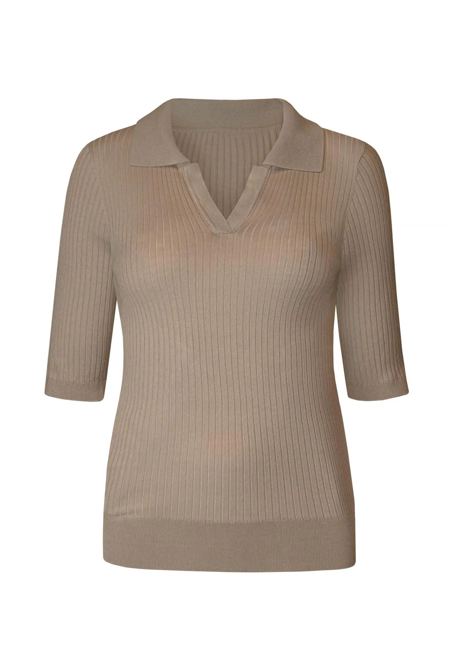 Колекцията MELLOW MOMENTS от смеси на коприна и вискоза съчетава вечна елегантност с изключително удобно носене. Лекият блясък на коприната и дишането на вискозата създават перфектния баланс – мек, ефирен и издръжлив материал, който гарантира комфорт във всеки един момент. Тези универсални дрехи са идеални както за лятна плажна почивка, така и за стилен градски тоалет. Комбинирайте ги със сандали и сламена шапка за релаксиращ ден или ги носете с токчета и елегантни аксесоари за вечерно излизане. Благодарение на комбинацията от вечна цветова палитра и плавни кройки, можете лесно да ги адаптирате към вашия стил и нужди. Класическа поло тениска slim fit с полу-дълги ръкави и V-образно деколте. Изработена от лека оребрена материя, където коприната и вискозата създават гладка, мека и луксозна текстура. Продуктът е проектиран и разработен в Естония!