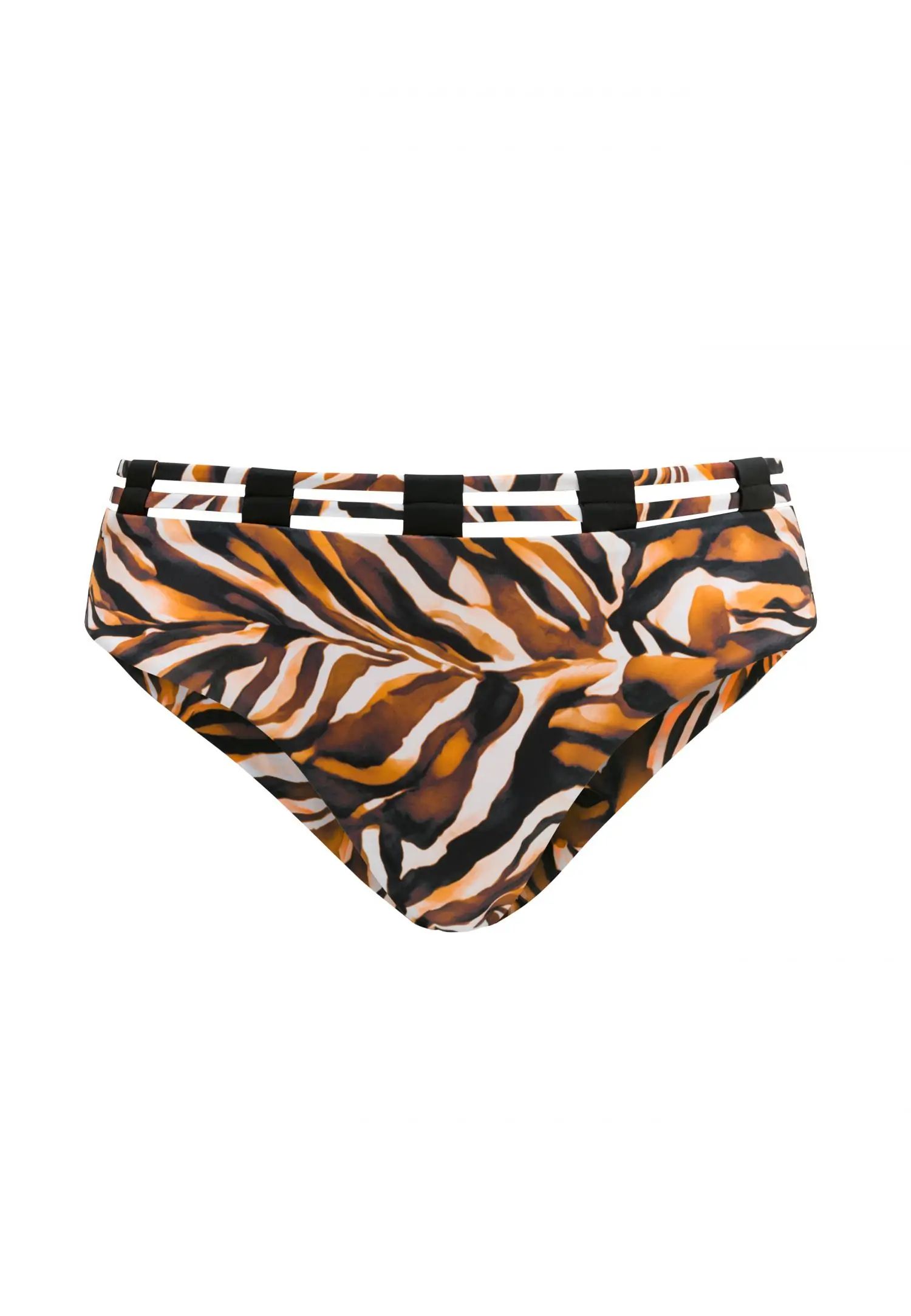 Долнище на бански в бразилски стил с ниско деколте и минимално покритие на гърба. Задният детайл е с двойна материя, а ръбът на отвора за крачолите е с меко обърнат ръб, без ластик или шевове, осигуряващ перфектно прилягане. Хастарът отпред осигурява допълнителен комфорт и покритие. Динамичният модел EYE OF THE TIGER подчертава уверен и модерен плажен стил. Продуктът е проектиран и разработен в Естония!