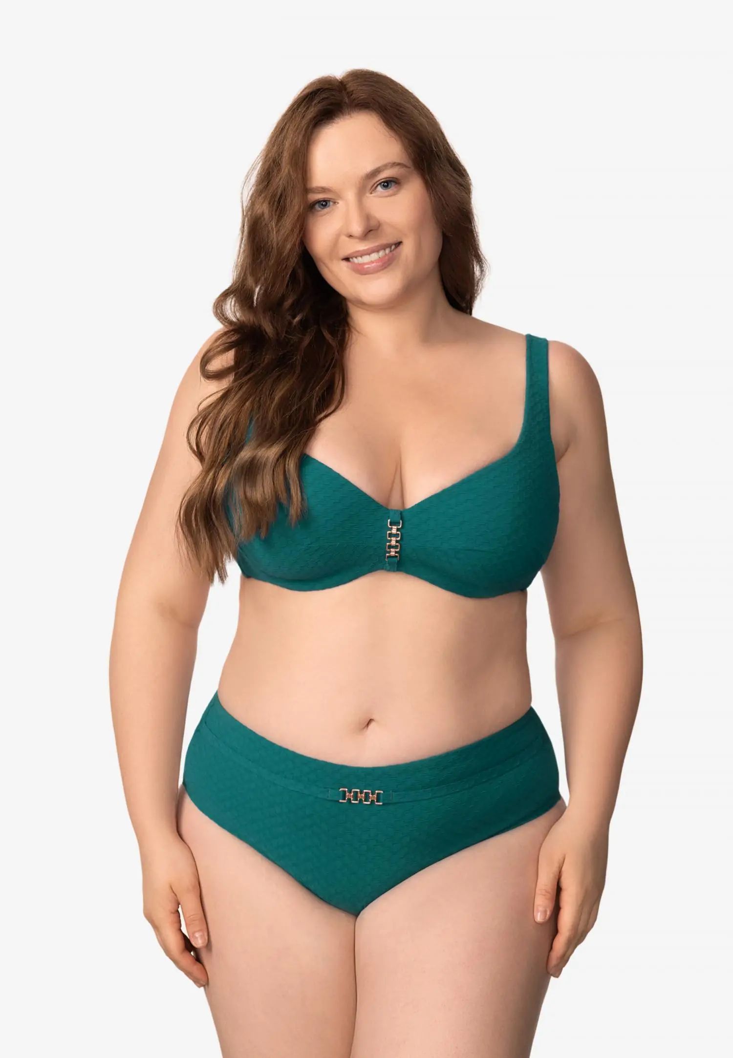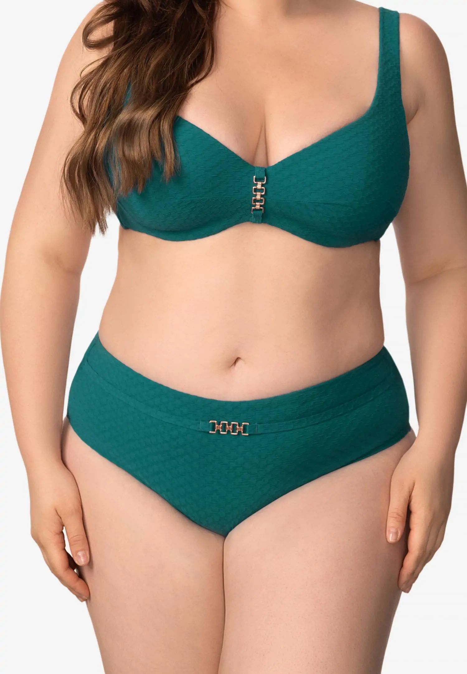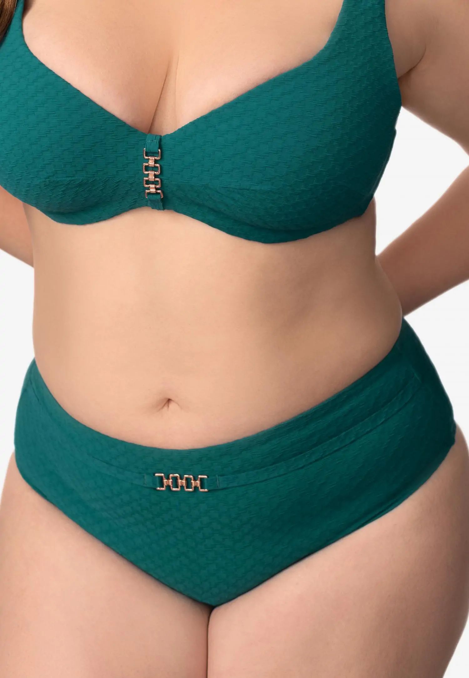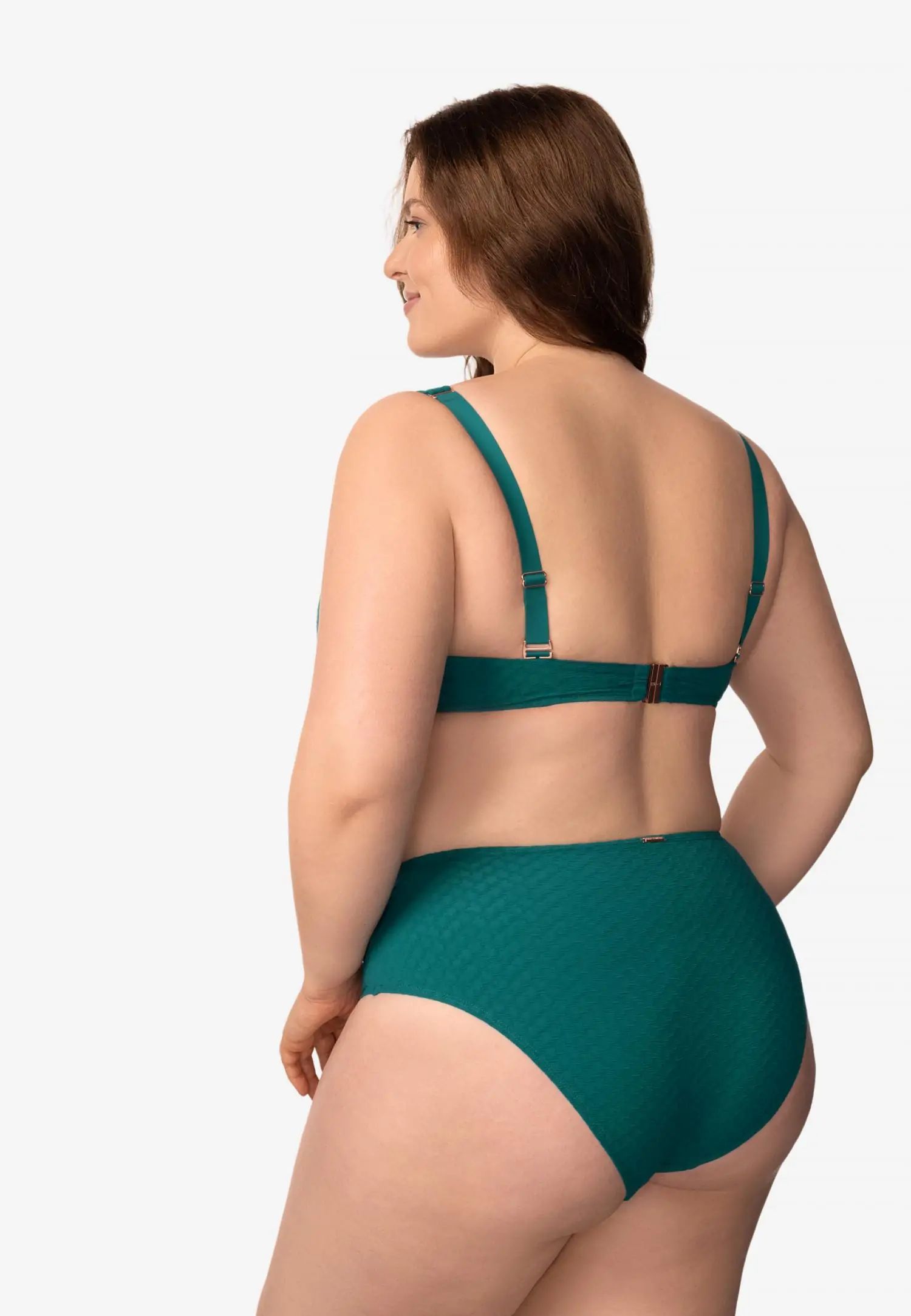 Долнище на бански със средна талия, отвор в долната част на крачола и по-голямо покритие отзад създават удобен и вечен силует. Хастарът отпред и отзад добавя комфорт и усещане за сигурност. Серията QUIET GRACE съчетава деликатна женственост със структурирана жакардова материя. Текстурата придава дълбочина и достойнство на всеки модел, създавайки спокоен и елегантен плажен стил. Продуктът е проектиран и разработен в Естония.