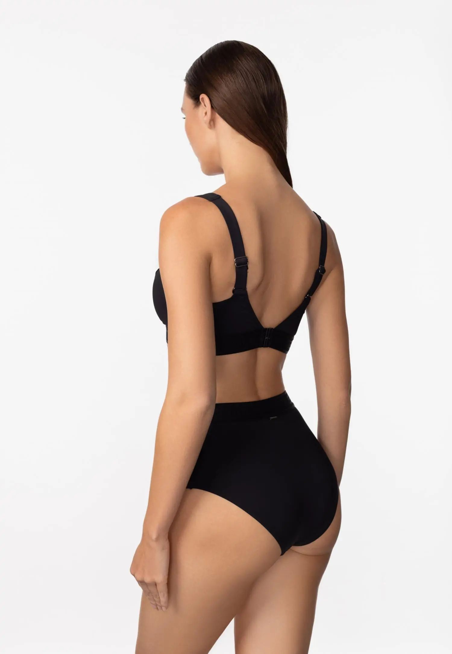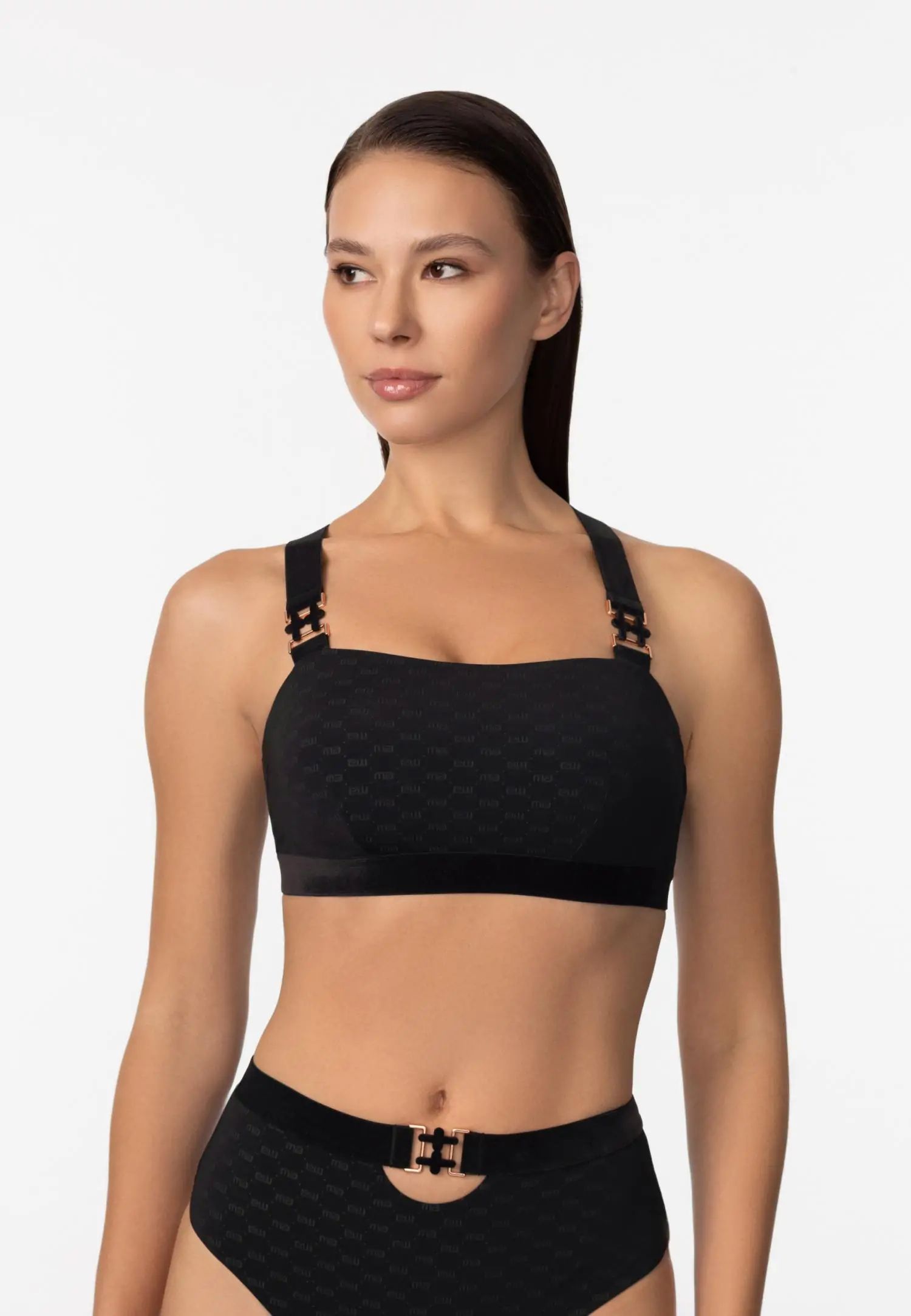 Горнище тип банду с банели и подвижна подплънка, което осигурява стабилна опора и красив силует. Подвижните и регулируеми презрамки ви позволяват да носите горнището по много начини, еластичната талия осигурява сигурно прилягане и комфорт. Серията LUXURY FRAGRANCE съчетава черна жакардова материя с лого и кадифени детайли в престижно и изразително цяло. Златисти акценти добавят изискан блясък, вътрешният слой с микрокапсули масло от чаено дърво внася нежна грижа и модерен лукс в колекцията. Продуктът е проектиран и разработен в Естония.