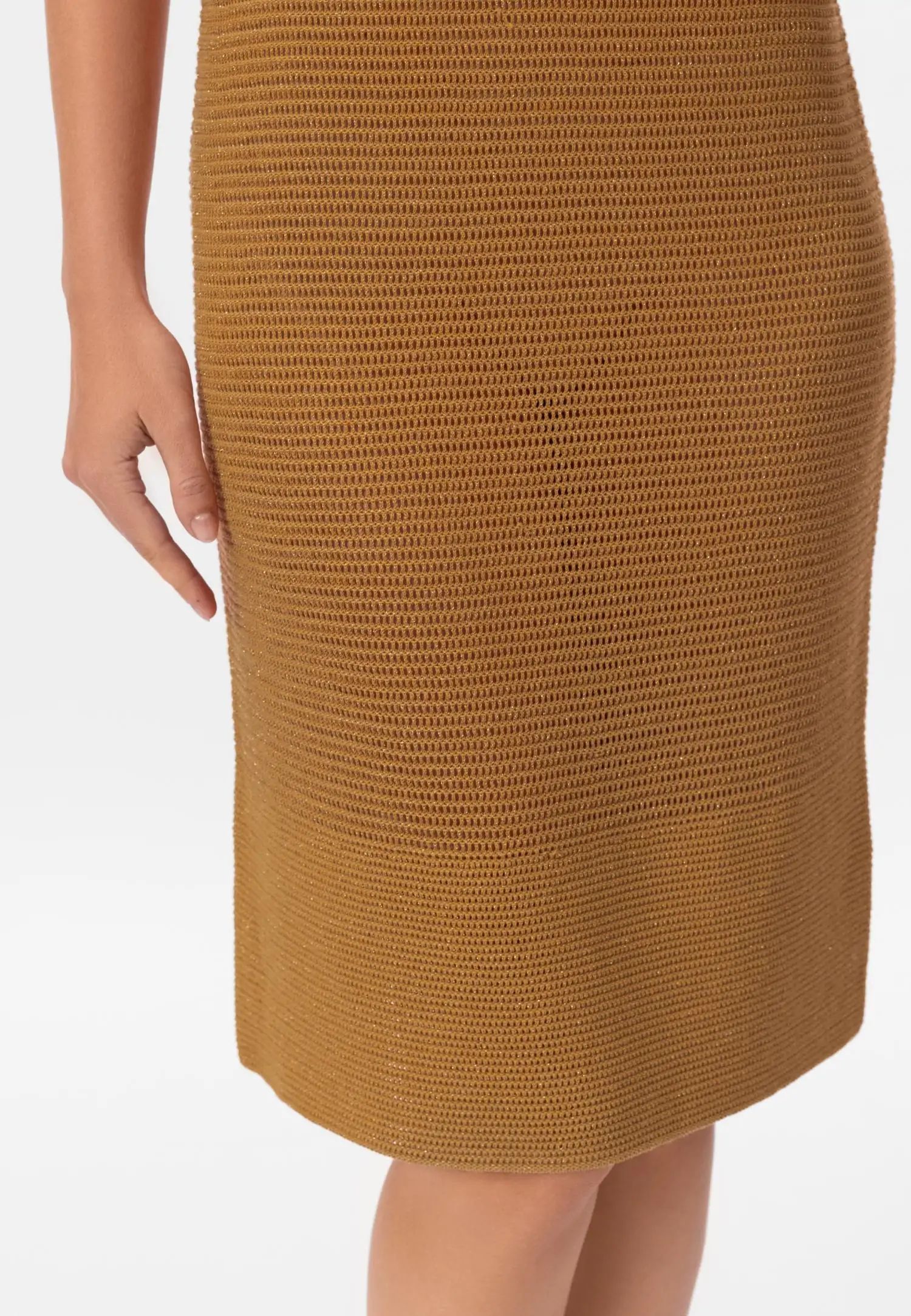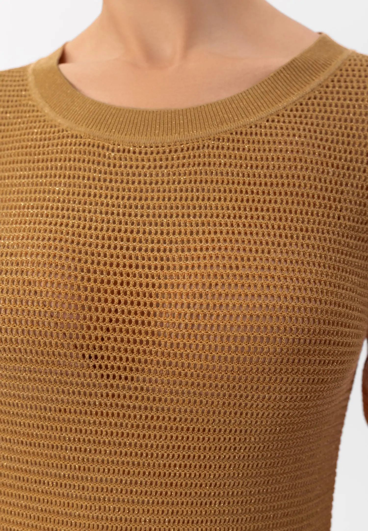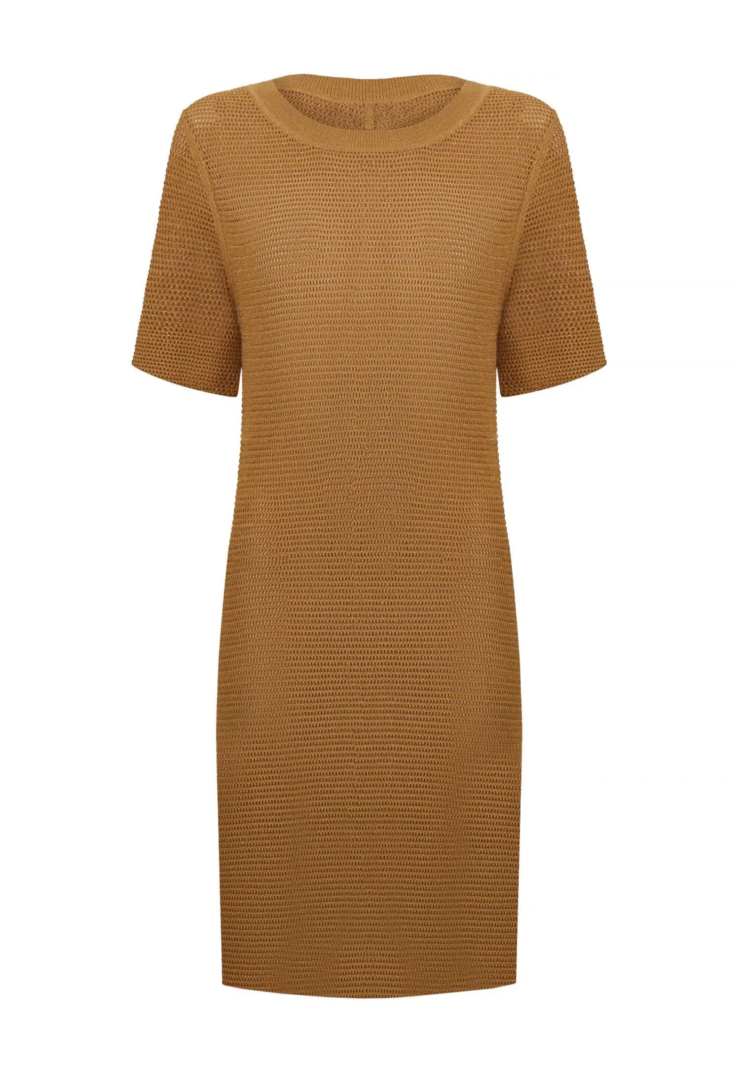 Плетена рокля с къс ръкав и обло деколте, с минималистична, свободна кройка и фини вертикални детайли, които създават изчистен и женствен силует. POETIC DREAMS съчетава мекия лукс на памука и коприната с нежния блясък на ултрафина лурексова нишка. Леката и ефирна прежда е изплетена в модерна имитация на плетене на една кука, която изглежда едновременно модерна и вечна. Продуктът е проектиран и разработен в Естония.